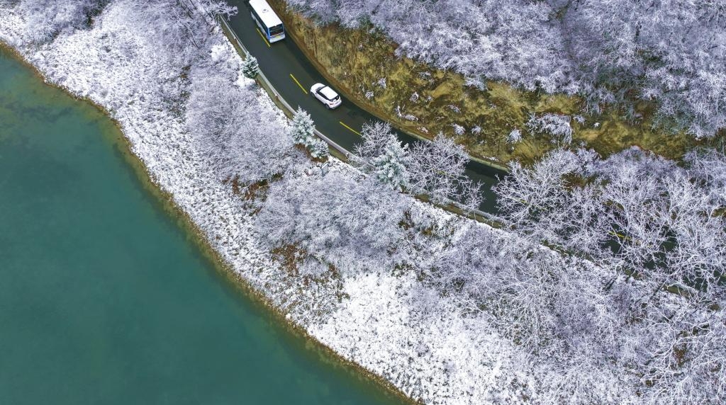 Lastatempe aperis neĝo en la gubernio Tanchang de la provinco Gansu, nordokcidenta Ĉinio.