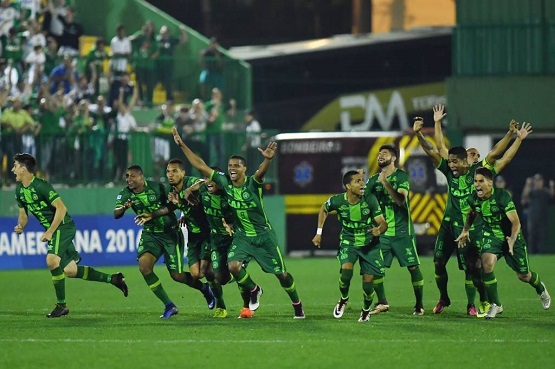 Chapecoense festas post venko en matĉo de la Sud-Amerika Pokalo